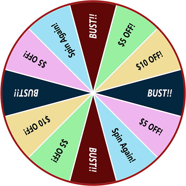 Give it a spin! *You can spin the wheel only once *If you win, you can claim your discount for 5 mins only!